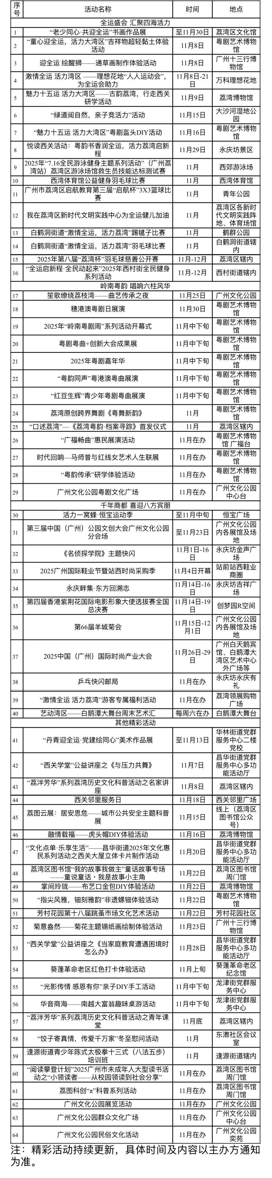 荔湾区11月活动一览表