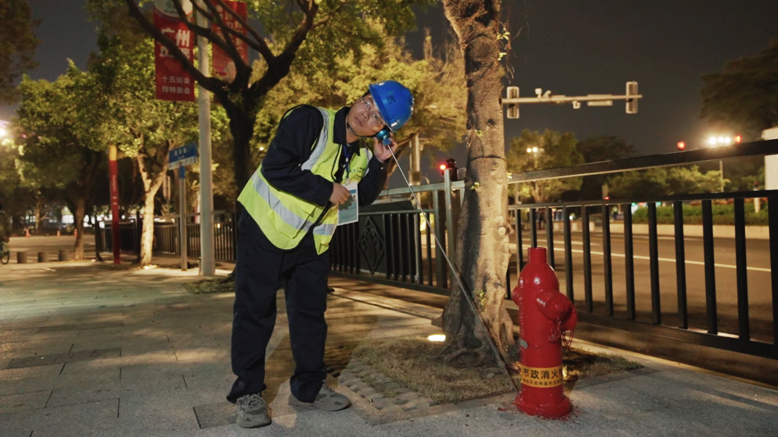 开幕式期间,广州水投自来水公司工作人员对奥体中心场馆周边开展巡检探漏 受访者 供图