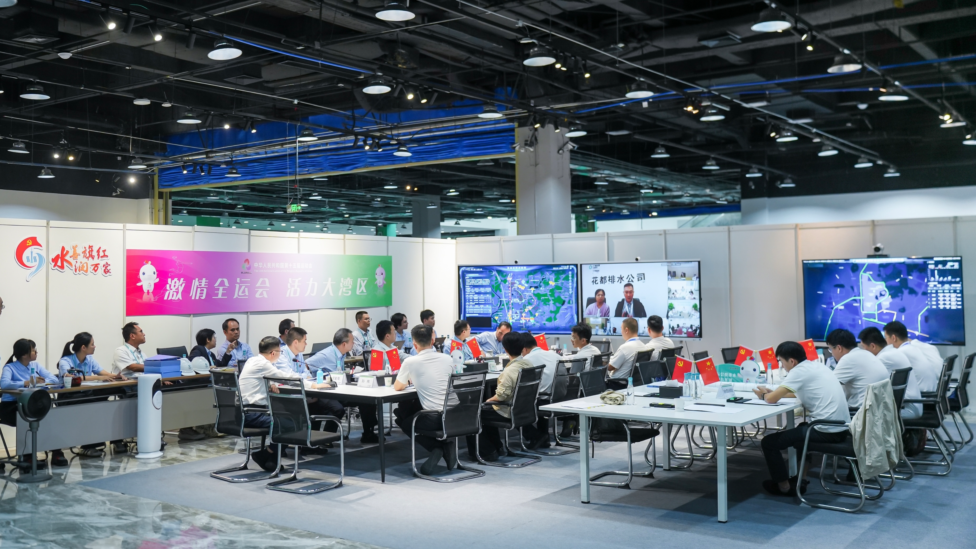 当开幕式场馆大屏幕上倒计时“3、2、1”的数字闪烁,广州水投集团供排水保障指挥部的智慧大屏上一组组数据也在跳动着,工作人员紧盯大屏上的数据变化。